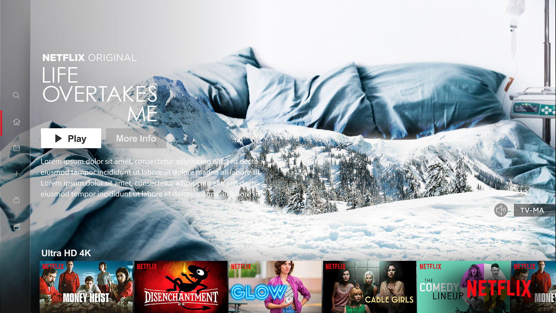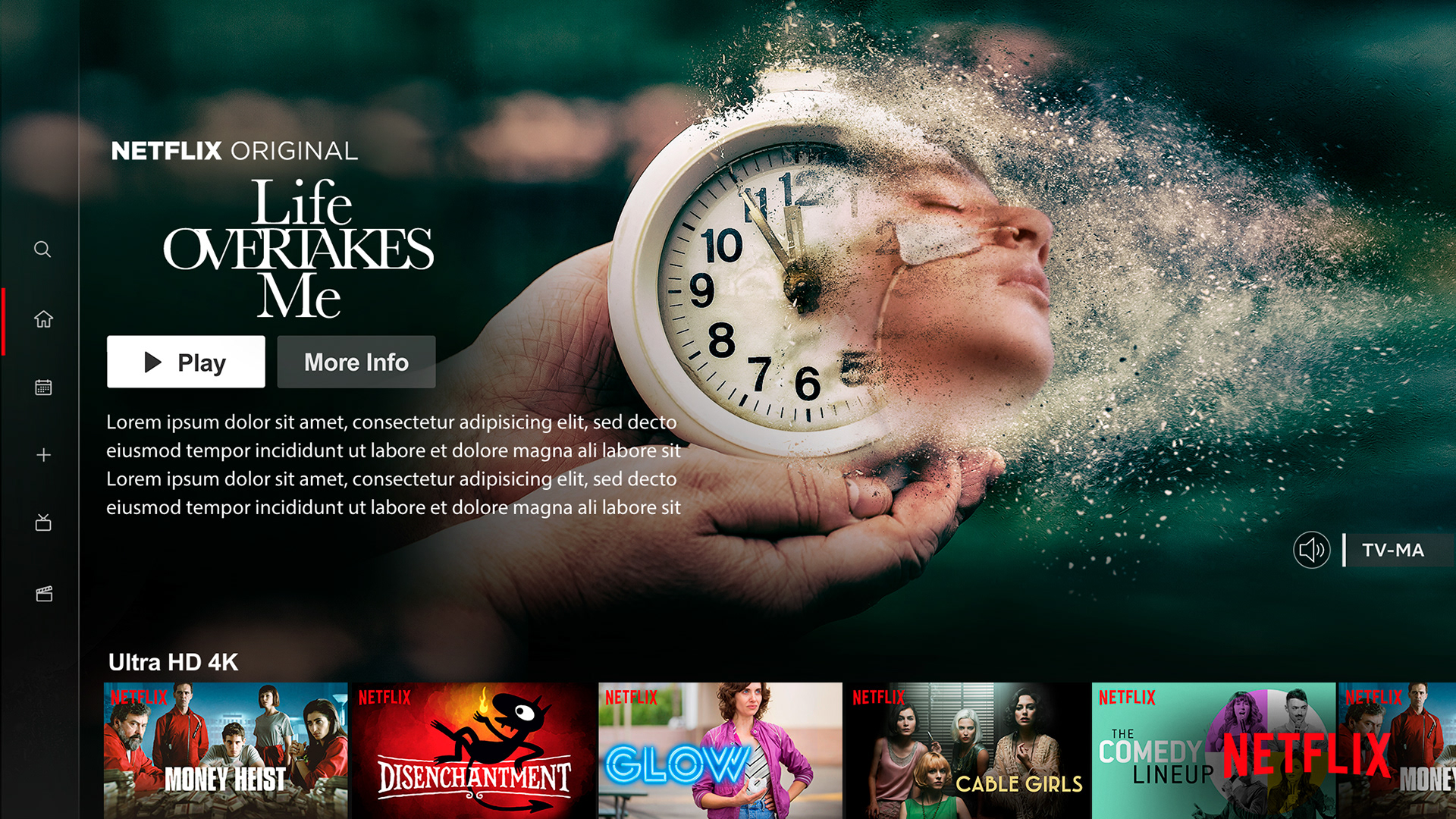 Tasked with creating digital billboard key art, box art and logo design for show promotion. Here are a few examples of what was submitted to Netflix.