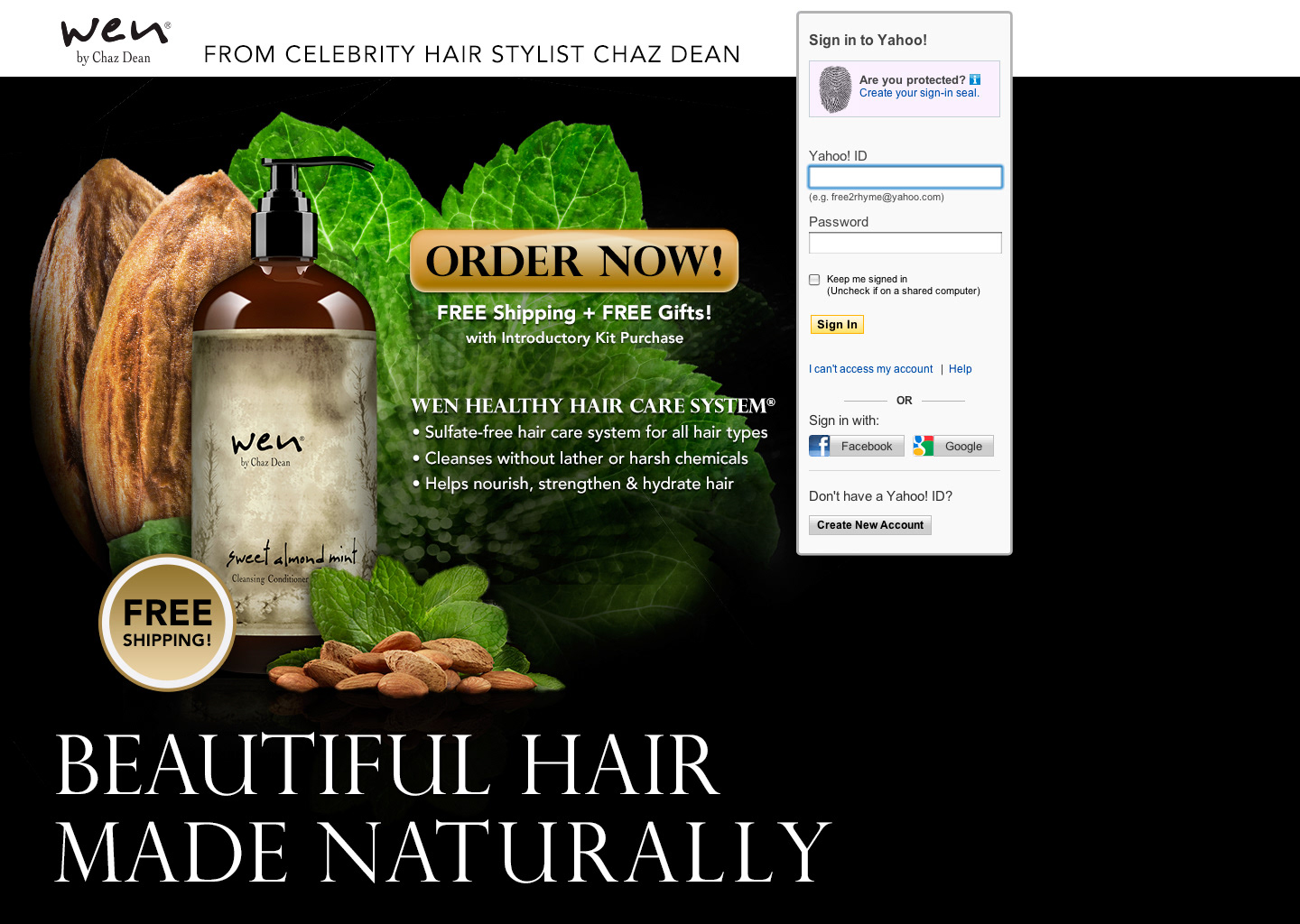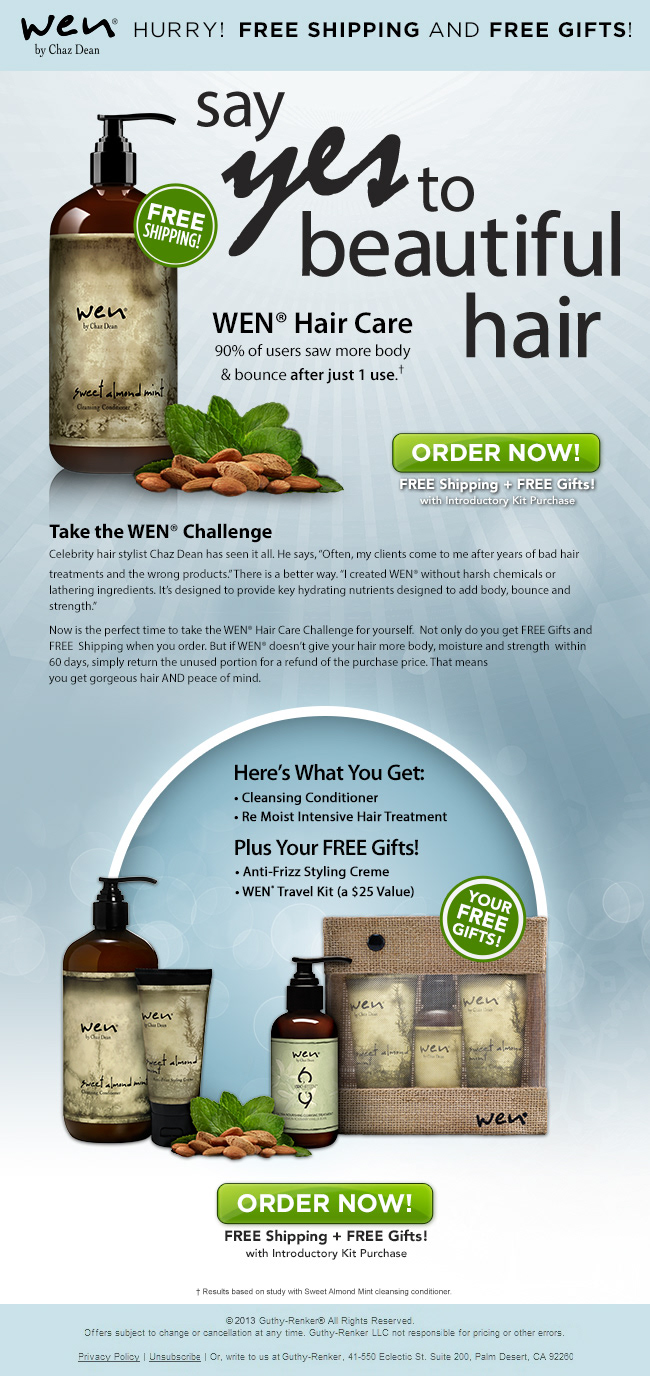 Tasked with creating several Yahoo Sign-in Screens, Marketing Emails and Landing Pages for Guthy Renker's popular hair care line WEN.
